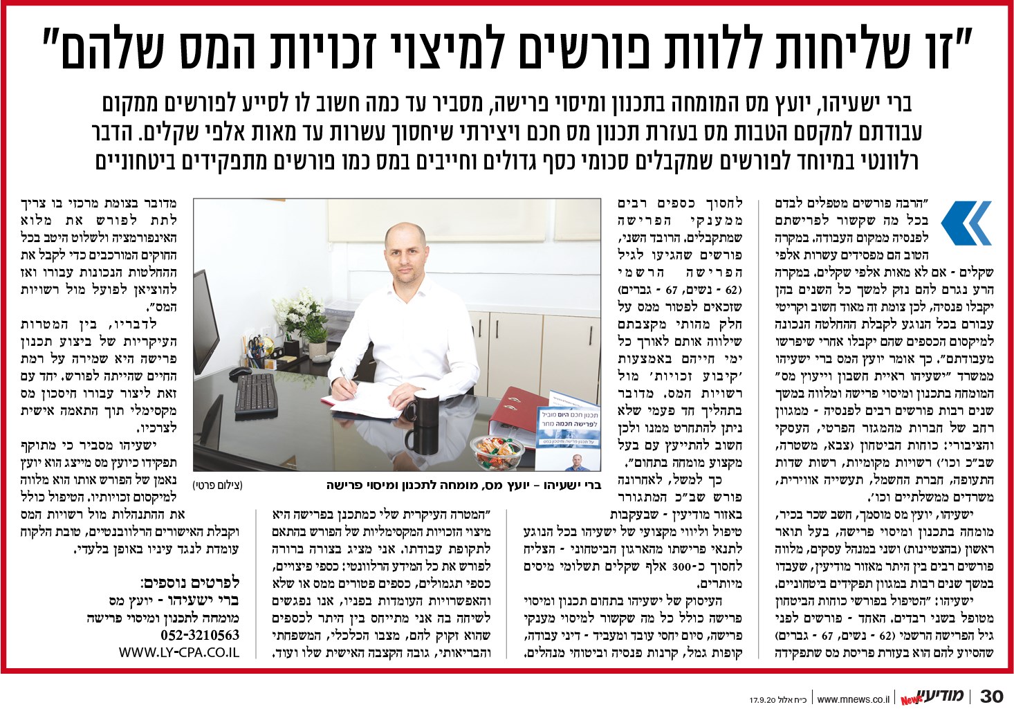 אני ממליצה בחום על ברי ישעיהו כיועץ פרישה וחושבת שזה מאוד נחוץ לפנות למישהו מקצועי בתחום ולא לנסות להתמודד עם נושא הפרישה בעצמך. רציתי להודות לך על הטיפול המקצועי והליווי הצמוד להכנת כל החומר שלי לקבלת "פיצויים" מהפרישה שלי. ג'ני סימון
